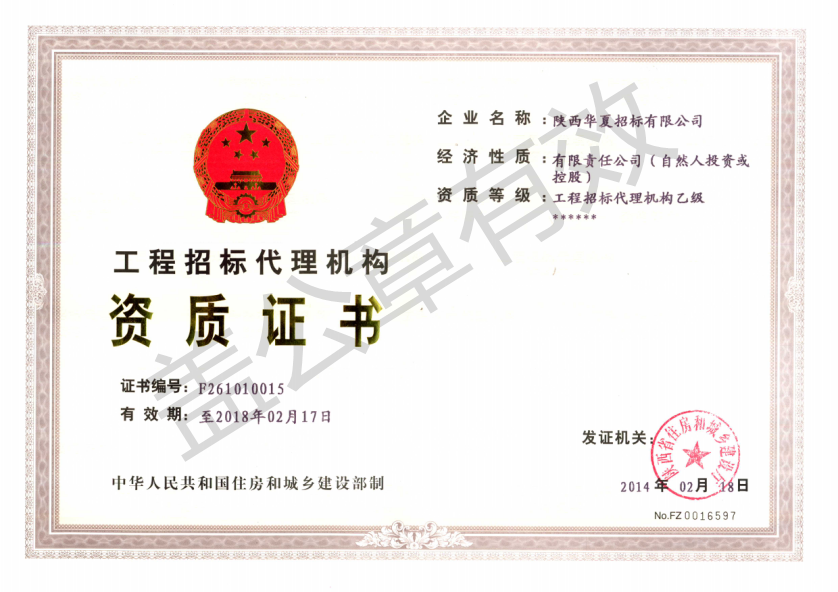 工程招標代理機構資質證書